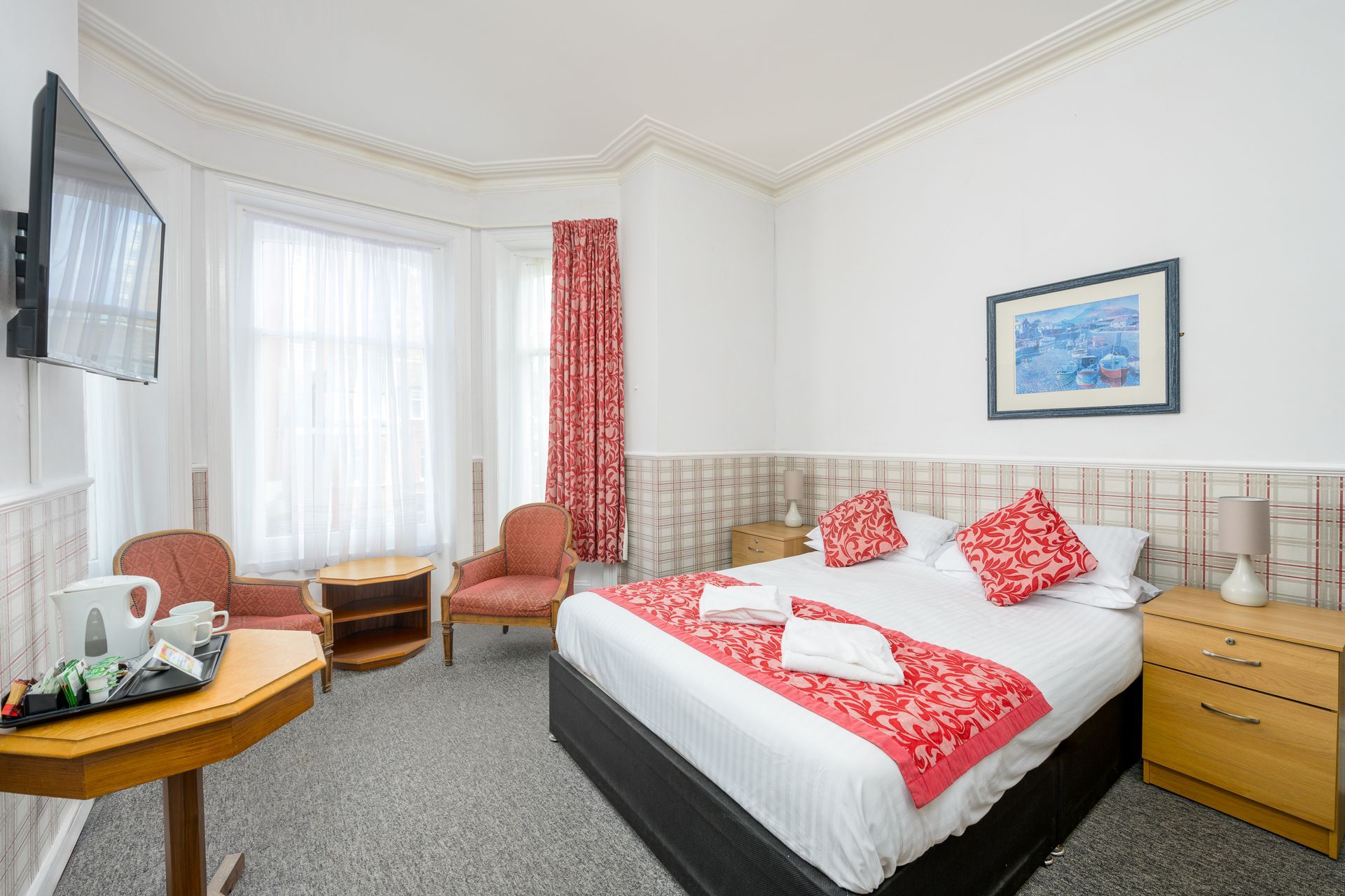 The Bournemouth Sands Hotel has 76 bedrooms with a mix of single, double, twin and larger treble and family rooms. All the rooms are tastefully furnished with en suite bathrooms, many with walk in showers. Every room has a flat screen tv and tea / coffee making facilities.